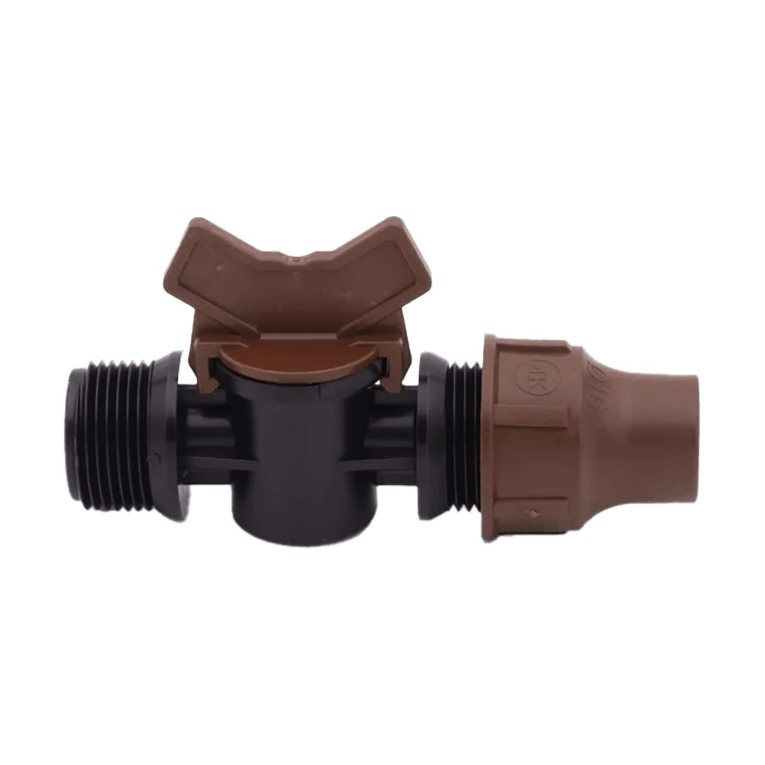 Der Rain Bird Lock Quick Kugelhahn 16x3/4"AG ist ein Verbindungsstück für Tropfrohrleitungen mit einem Außendurchmesser von 16 mm. Er ist aus Polyethylen gefertigt. Der Kugelhahn wird mit einer Vierteldrehung festgeschraubt und bietet eine sichere und leckagefreie Verbindung.